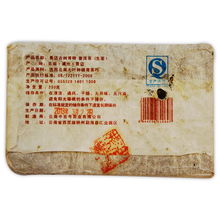 产品名称:景迈古树青砖 普洱茶(生茶)